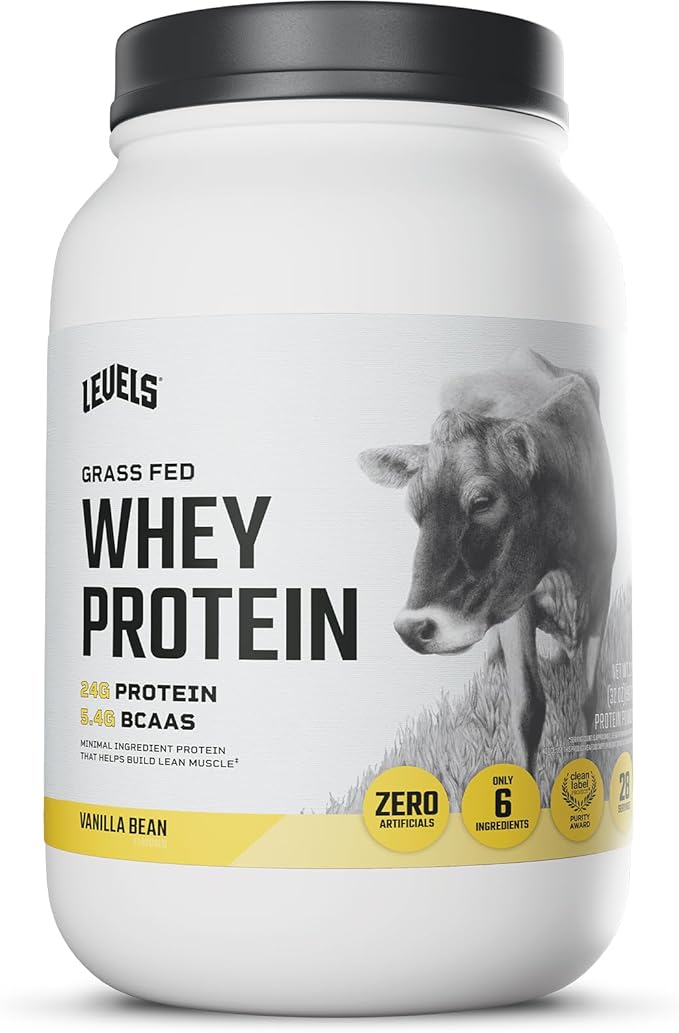 Levels Grass Fed Whey Protein Powder, No Artificials, 24G of Protein, Vanilla Bean, 2LB