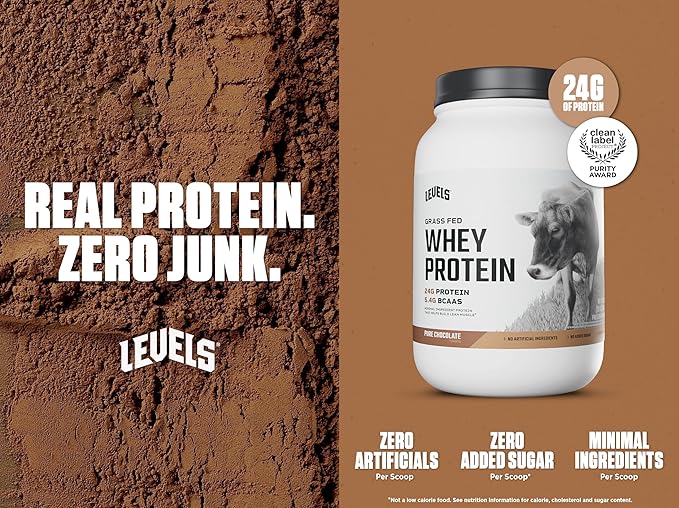 - LEVELS WHEY PROTEIN: Each scoop of Levels Pure Chocolate Whey contains 24g Protein, 5.4g BCAAs (branched-chain amino acids), and no added sugars. Trusted by athletes, fitness enthusiasts and daily grinders everywhere, our whey is crafted for everyone’s lifestyle.