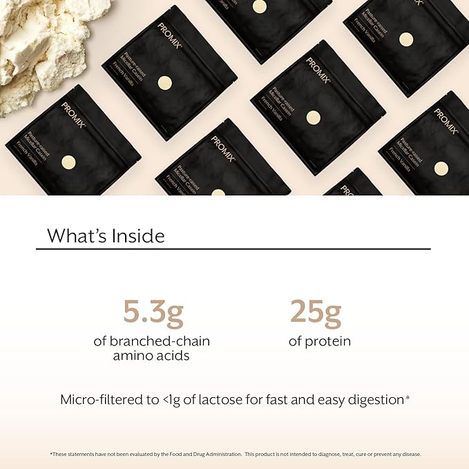 - Slow and Sustained Recovery: Promix Casein Protein Powder is a cold-processed and acid-free bioactive native casein made from milk of grass-fed cows. This lightly sweetened powder contains highly branched alpha/beta/kappa-proteins for a sustained release of amino acids for bedtime use, as well as sunflower lecithin for improved absorption and blending. Vanilla flavor. 32 servings per container, 2 scoops per serving.