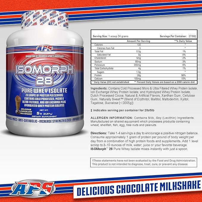 APS Nutrition Isomorph 28 Protein Powder | Pure Whey Isolate | Cold Pressed, Ultra- Filtered, & Ion Exchange Isolates | 28g Protein | 5 Pound (Chocolate Milkshake)
