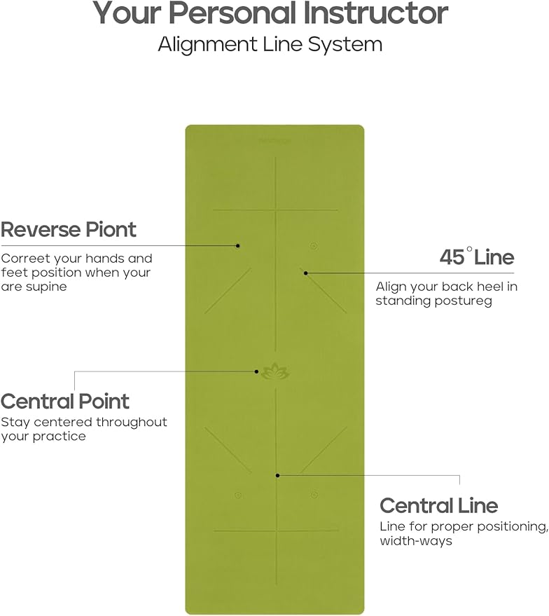 - Body Alignment System: The yoga mat alignment lines help you to focus and adjust your hands and feet to the accurate position, and keep body in proper alignment. The yoga mats for home workout allow you to work out alone during yoga time, away from injuries.