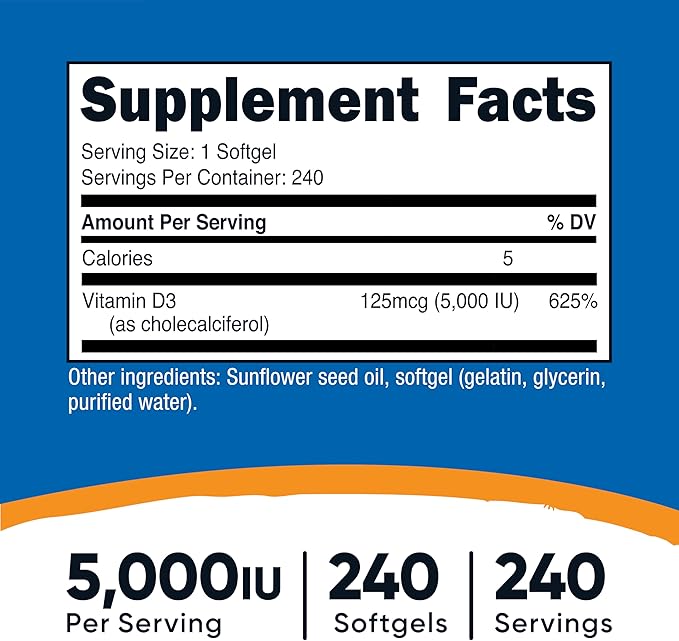 - Each Capsule Contains 5,000IU (125mcg) of Vitamin D3