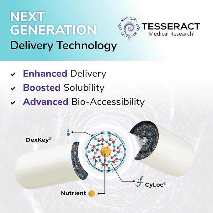 - Unrivalled Delivery: Tesseract’s proprietary nano-molecular delivery science results in optimal absorption and bioavailability at micro-doses. A ground-breaking transport and time-release system that enables you to receive the full health benefits from your dietary supplements