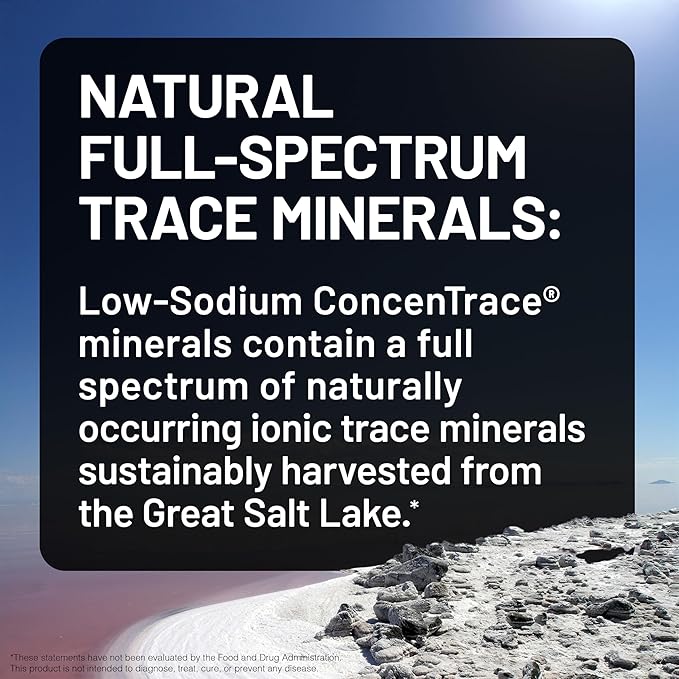 - NATURAL FULL-SPECTRUM TRACE MINERALS: Low-Sodium ConcenTrace minerals contain a full spectrum of naturally occurring ionic trace minerals sustainably harvested from the Great Salt Lake.*