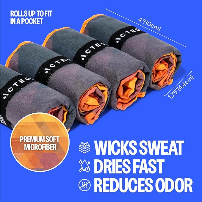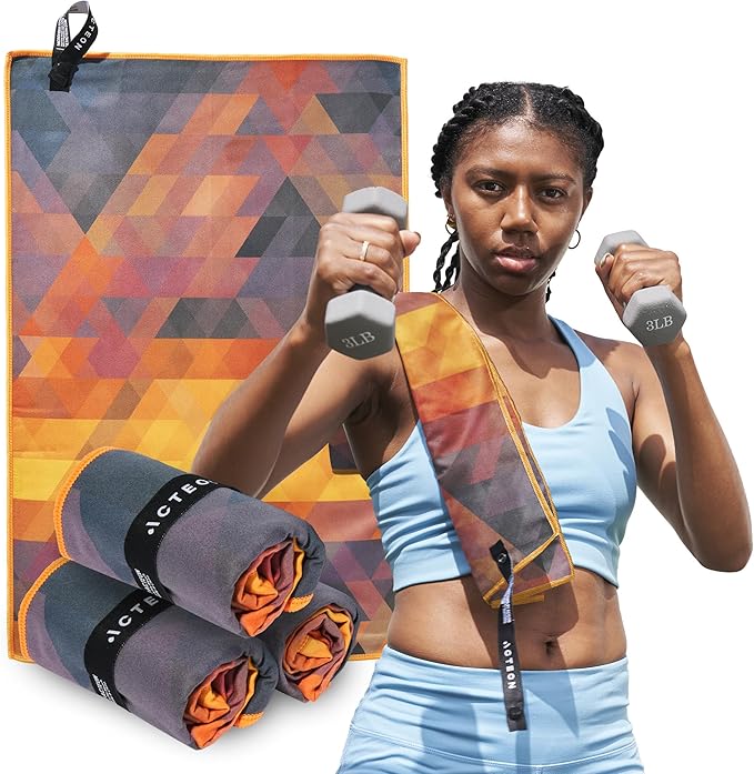 Acteon Quick Dry Microfiber Gym Towel, 4 Pack Odor-Free, Super Absorbent Workout Towels, Body Sweat