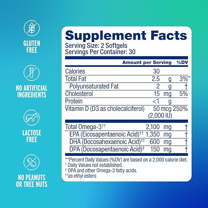 - 2-IN-1 OMEGA-3 SUPPLEMENT: OceanBlue Omega-3 2100 with Vitamin D3 combines our triple-strength Omega-3 fish oil with 2,000 IU of Vitamin D3 to help support a healthier body and simplify your daily wellness routine with fewer capsules