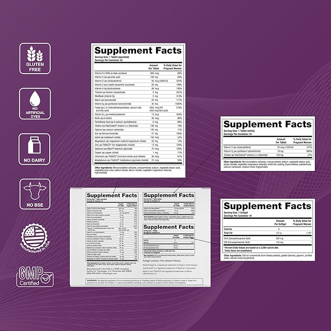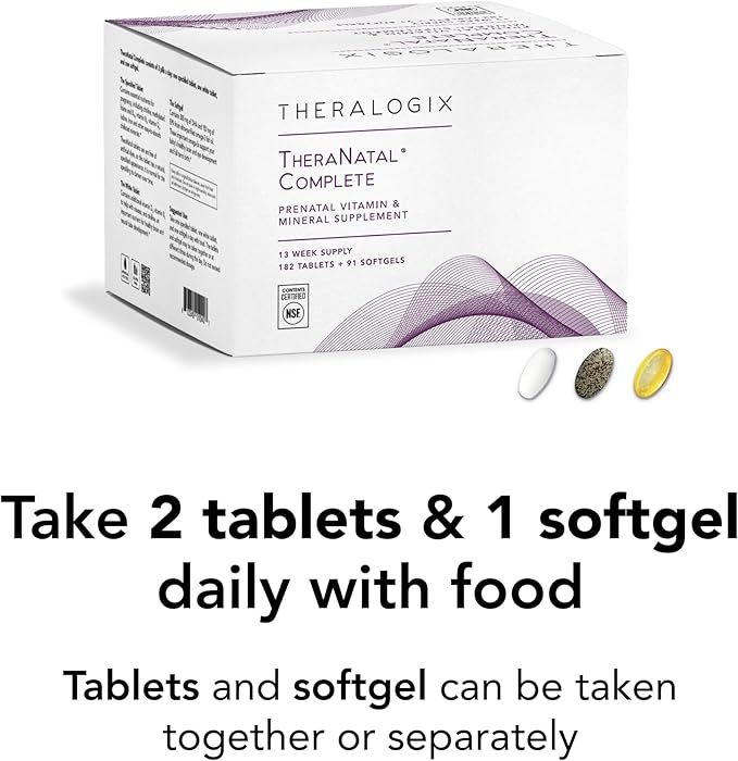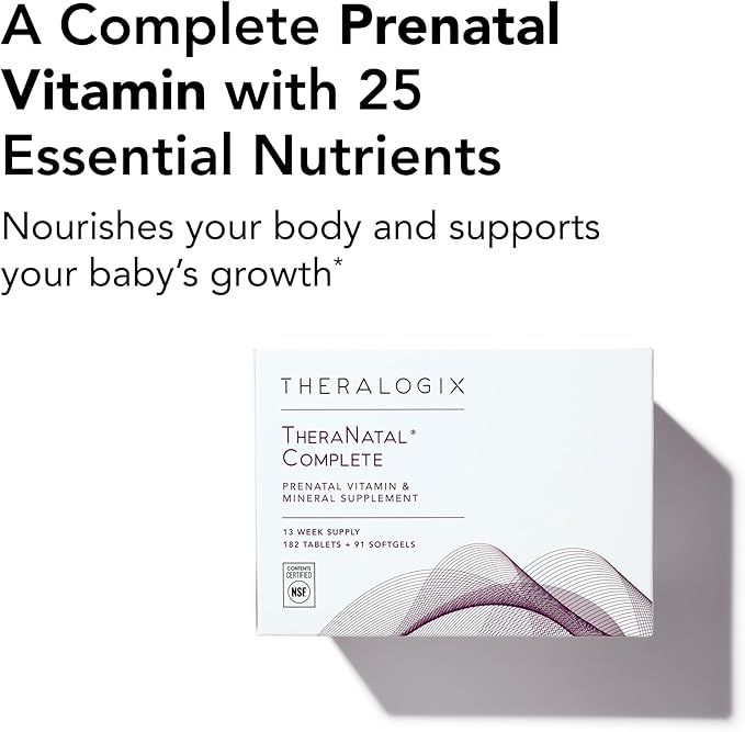 Theralogix TheraNatal Complete Prenatal Vitamin Supplement - 91-Day Supply - with DHA, Vitamin D3, Folate, Iodine, Choline, Iron, Vitamin B6 & More - NSF Certified - 182 Tablets & 91 Softgels