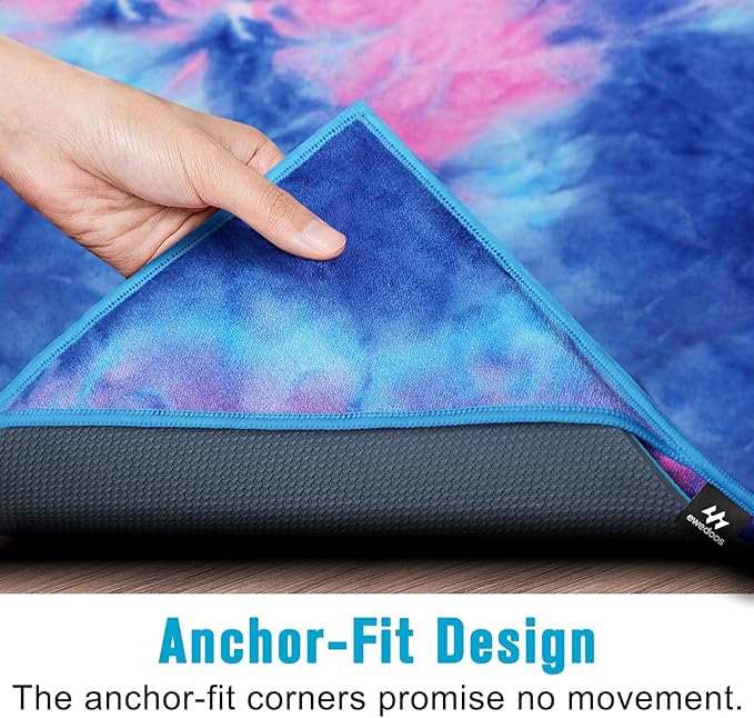 Ewedoos Yoga Towel Mat Towel with Anchor Fit Corners Non Slip Towel for Hot Yoga, Pilates, Workout, Camping