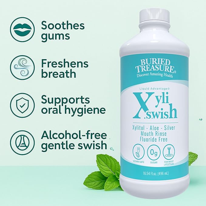 Xyli Swish - All Natural Formulated Nano Silver, Xylitol & Aloe Mouthwash - Alcohol and Fluoride Free - Oral Rinse to Fight Bad Breath & Dry Mouth - Peppermint Flavor - 16oz.