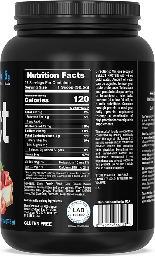 PEScience Select Protein Powder, Whey and Casein Blend, Clean Protein Powder for Women and Men, Low Calorie, Low Carb, Keto Friendly, Gluten Free, Strawberry Cheesecake, 27 Servings
