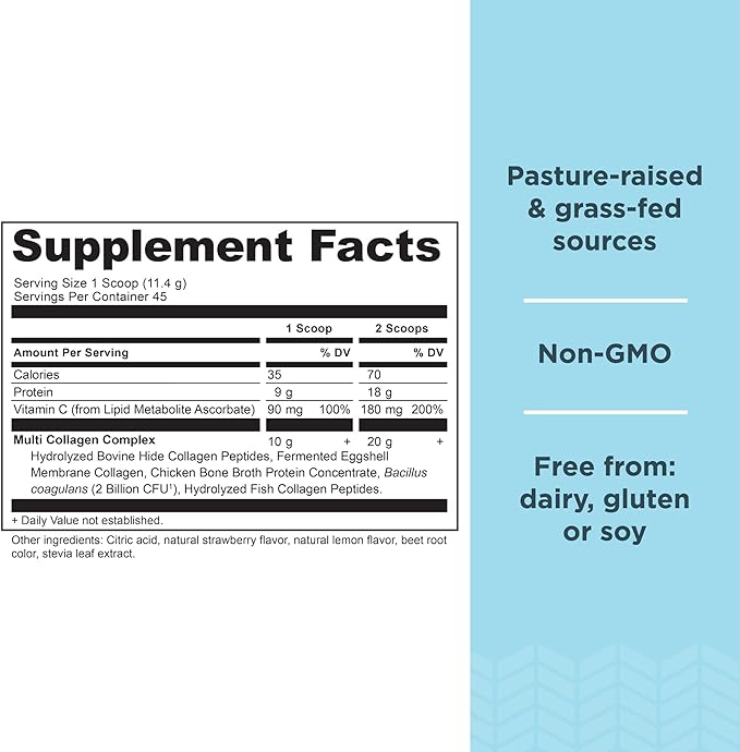 Ancient Nutrition Hydrolyzed Collagen Peptides Powder with Probiotics, Strawberry Lemonade Multi Collagen Protein for Women and Men with Vitamin C, 45 Servings, Supports Skin and Nails, Gut Health, 18