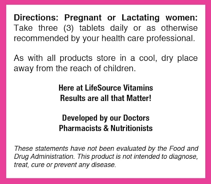 LifeSource Vitamins Pre-Natal Multi-Vitamins and Minerals with DHA - Mom and Baby Health - 180 Tablets