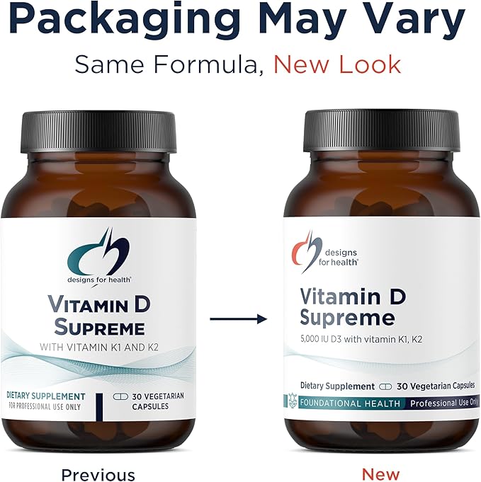 Designs for Health Vitamin D Supreme - Vitamin D 5000 IU with 2000mcg Vitamin K as MK4 for Bone Health, Heart Health & Immune Support - Vitamin D3 Enhanced with GG Supplement (30 Capsules)