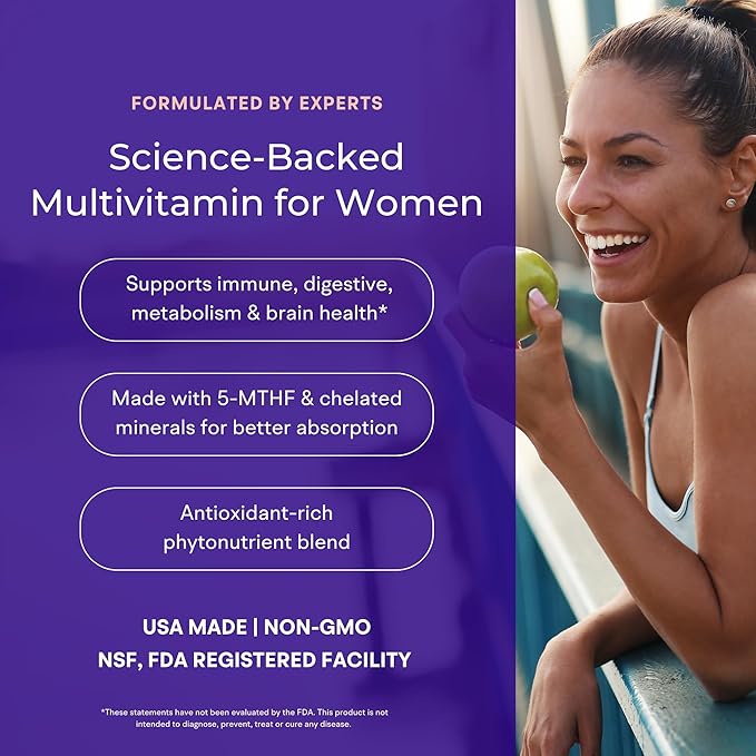 Multivitamin for Women (120 Vegetarian Capsules) Whole Food Vitamin with Essential Nutrients, Natural Calcium, Magnesium, Selenium, Zinc, Biotin, Vitamin A, B6, C, D3, E, K and More
