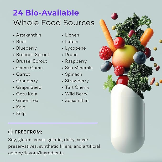 - Concentrated Ingredients for All-Around Health: VitaminIQ’s Whole Food Multivitamin covers essential nutritional needs for women’s health sourced from Beet Juice, Bilberry, Black Olives, Blueberry, Broccoli, Cabbage, Carrot, Cranberry, Goji Berry, Grape Skin and Seed, Green Tea, Kale, Parsley, Pomegranate, Raspberry, Spinach, Strawberry, and Tomato.