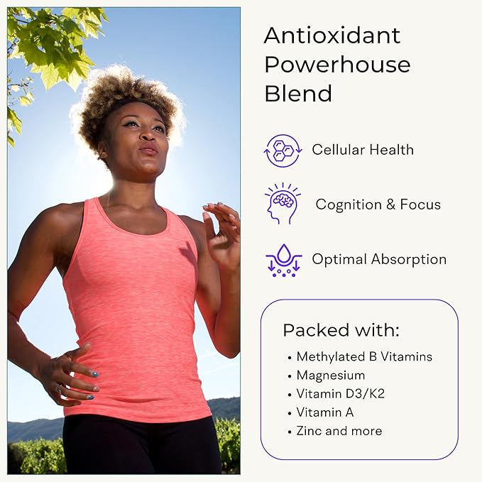- Rich Multimineral Supplement: Our multi-vitamins for women contain Vitamin C from Camu Camu Berry, Calcium from Red Algae, Iodine from Kelp plus Vitamin A, D3, E, K, B6, B12, Thiamin, Riboflavin, Niacin, Folate, Biotin, Pantothenic Acid, Magnesium, Zinc, Selenium, Copper, Manganese, Chromium, and more.