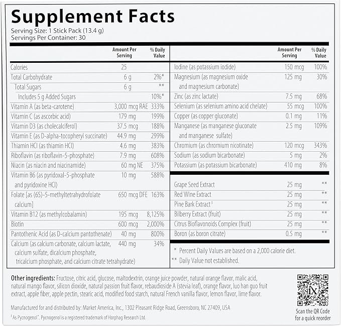 - 4-in-1 Multivitamin Powder Packets – Daily packets combine Multivitamin, Activated B-Complex, Calcium Plus & OPC-3 with Pycnogenol, simplifying your supplement routine.