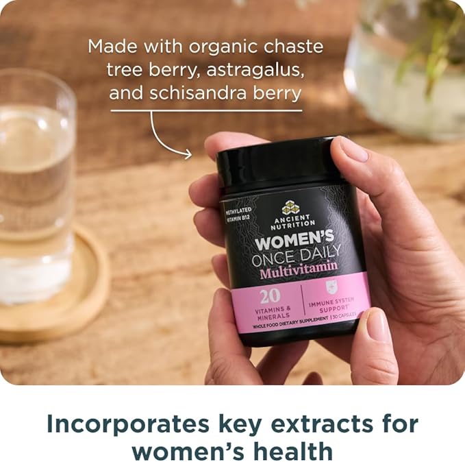 Ancient Nutrition Multivitamin for Women, Women's Once Daily Supplement, Methlyated Vitamin B, C, K2, Magnesium, Folate & Iron, Supports Bone Health, 30 Count
