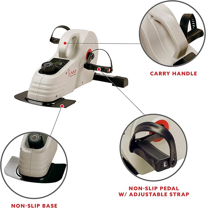 Sunny Health & Fitness Dual Function Under Desk Pedal Exerciser, Portable Indoor Cardio Mini Bike at Home, Arm/Leg Cycle for Seniors, Optional Magnetic, Motorized & Free SunnyFit App Bluetooth Connect