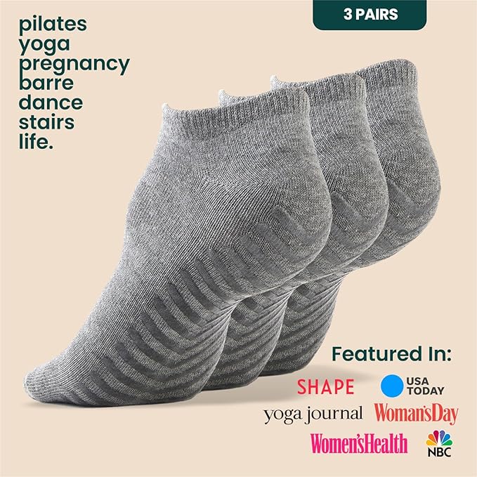 Gripjoy Grip Socks 3-Pack, Non Slip Socks for Yoga, Pilates, Barre, Dance