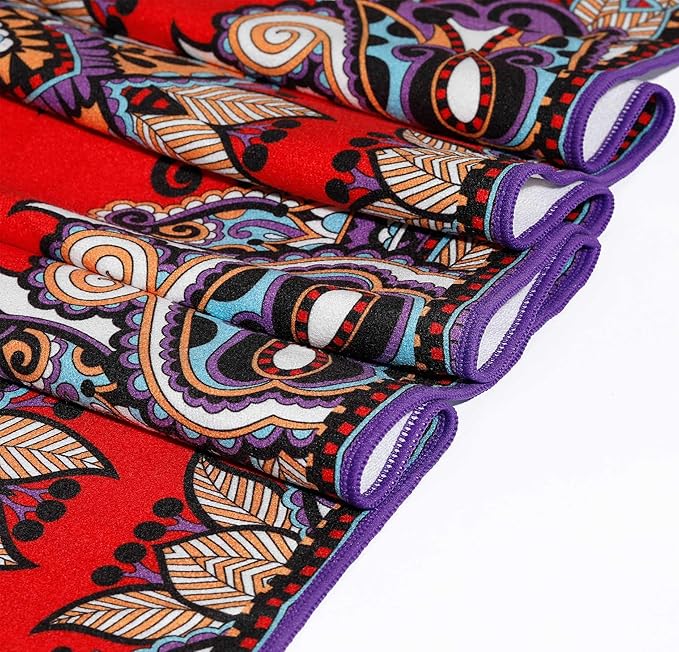 - Multi-Purpose: Great for yoga, travel and active sporty lifestyles. It can also be used as beach towel, table cloth and shower towel. The beautiful vibrant colors and design will brighten up your practice on the mat.