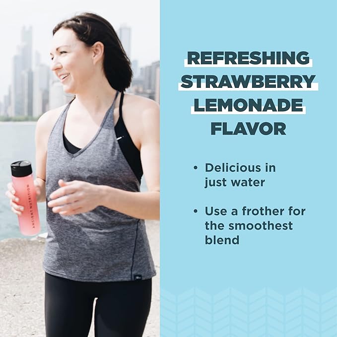 Ancient Nutrition Collagen Peptides Powder, Multi Collagen Protein, Women & Men, Vitamin C, Probiotics, Hydrolyzed Collagen, Supports Skin, Joints, Gut Health, Strawberry Lemonade, 24 Servings
