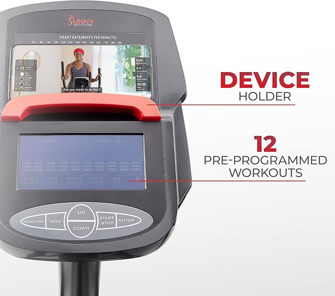 - CONVENIENCE: Have everything you need for your workout right at your fingertips. Use the device holder to secure your phone or tablet to workout with the SunnyFit app or stream your favorite movies and TV shows. Hydrate during your workout without missing a beat, as the centrally located bottle holder keeps your water bottle just an arm’s reach away.