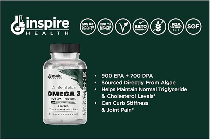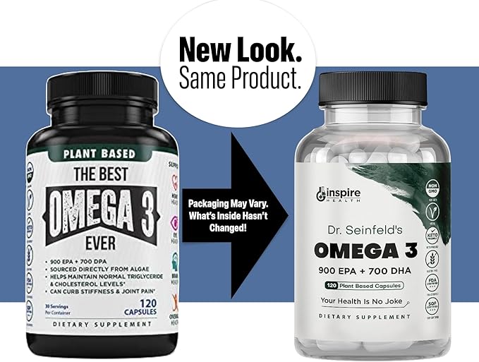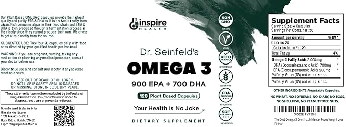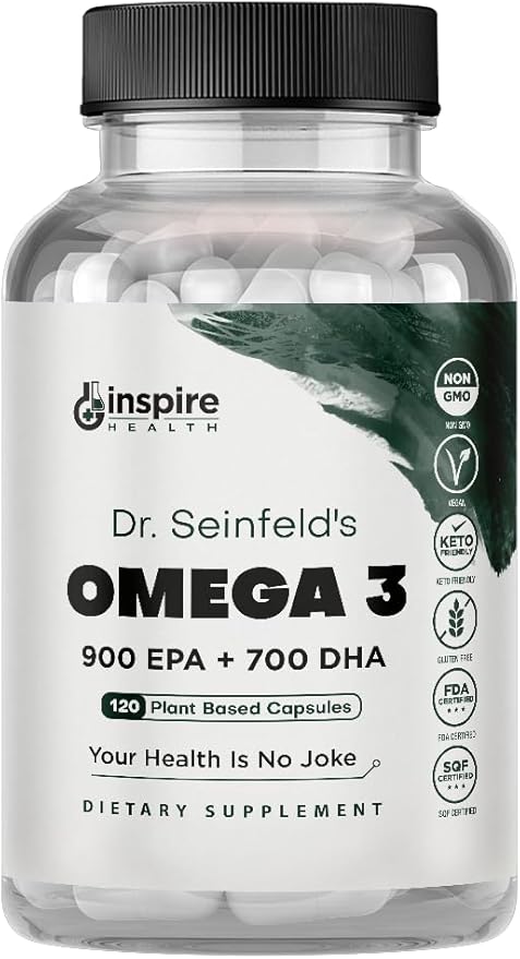 The Very Best Vegan Omega 3 Supplement - 120 Capsules - Algae Omega 3 Vegetarian Supplement - Plant Based Fish Oil Alternative - EPA DHA Supplement - Made in The USA - Heart Stress Relief Dr. Seinfeld