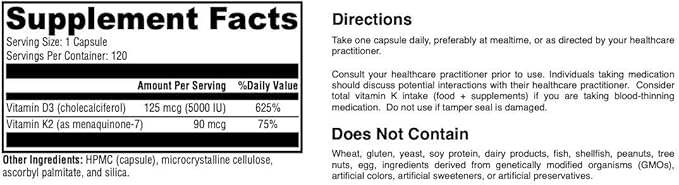 - 90 mcg Vitamin K2 (MK-7 or menaquinone-7)