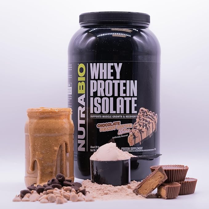 NutraBio 100% Whey Protein Isolate Protein Powder, 25g Protein with Complete Amino Acid Profile, Non-GMO, Soy & Gluten Free, Low Carb, Low Calorie Whey Protein Powder, Chocolate Peanut Butter, 2 Lbs