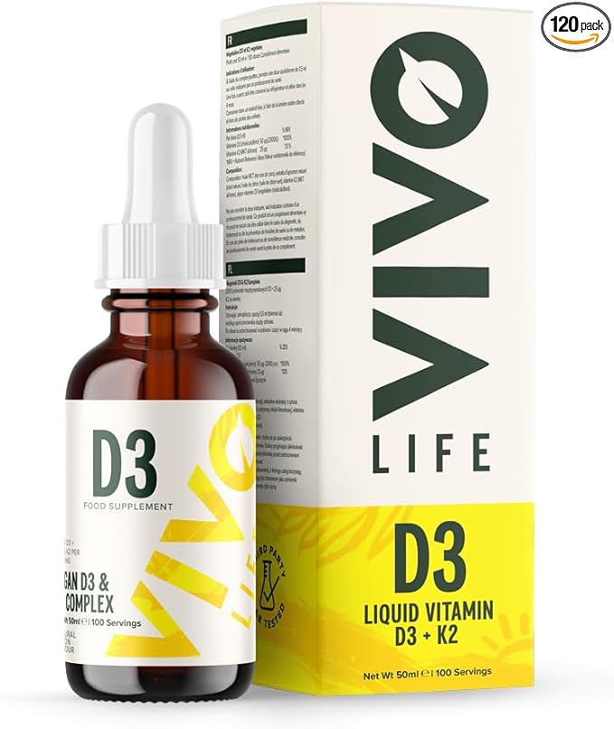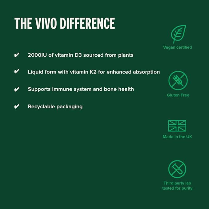 Vivo Life - Vitamin D3 K2, 50ml Liquid Complex Drops, 2000iu of D3, Vegan Health Supplement for Men and Women, 100 Servings