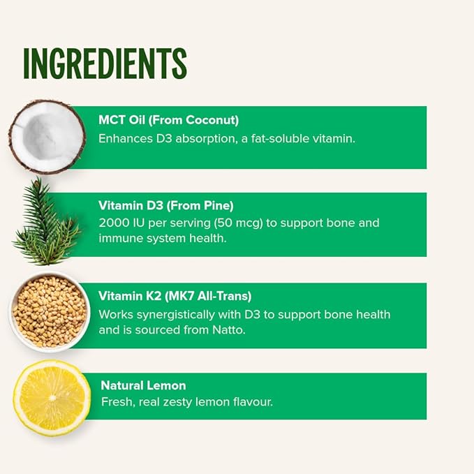 - VEGAN VITAMIN D3 PLUS K2 - 2000IU of vitamin D3 sourced from algae with vitamin K2 for enhanced absorption - in a highly absorbable liquid form.