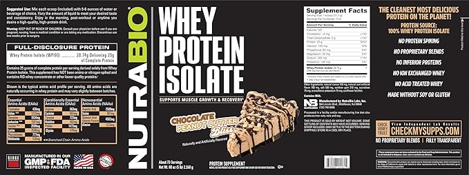 NutraBio 100% Whey Protein Isolate Protein Powder, 25g Protein with Complete Amino Acid Profile, Non-GMO, Soy & Gluten Free, Low Carb, Low Calorie Whey Protein Powder, Chocolate Peanut Butter, 5 Lbs