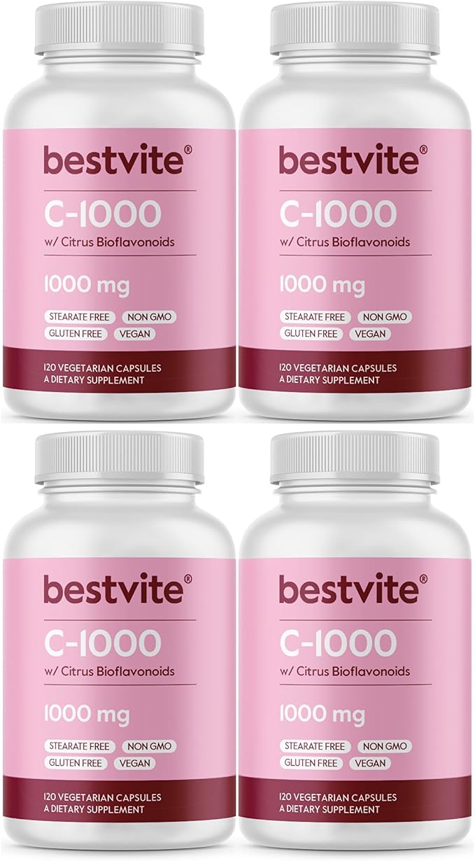 BESTVITE Vitamin C 1000mg (480 Vegetarian Capsules) (120 x 4) with Citrus Bioflavinoids - No Stearates - Vegan - Non GMO - Gluten Free