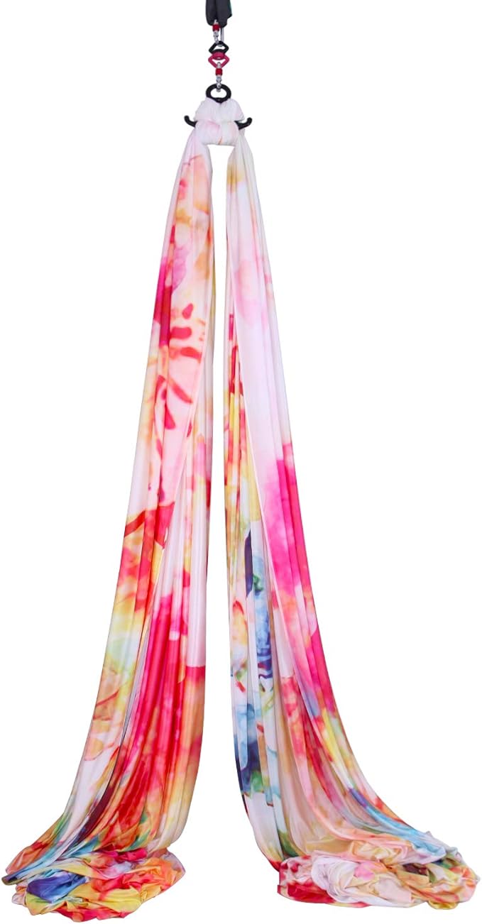 Aerial Silks 13 Yards Hardware Kit Medium stretch Aerial Yoga Hammock Acrobatics- Include Carabiners,Rescue 8,Swivel, Height Adjustment Strap, Portable Storage (Petal)