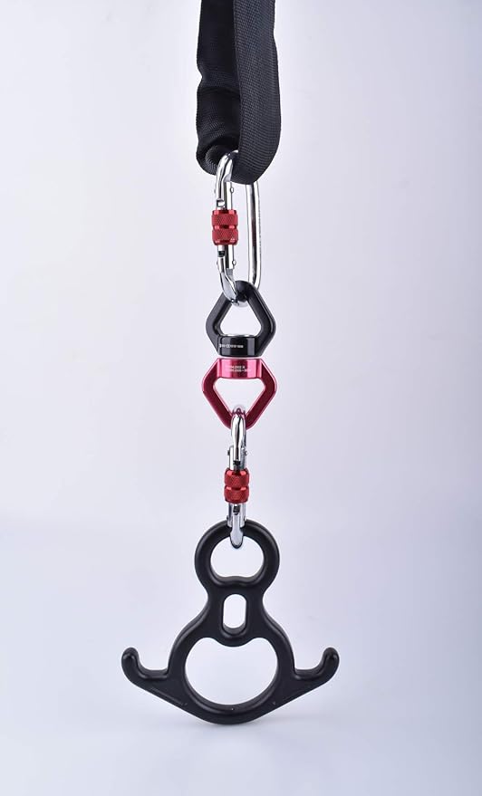 - Certified High Strength Hardware Rigging. 2 Steel Screw-Lock Carabiners (5620 Lbf), Rescue 8 / Descender (6744 Lbf), Mountaineering Swivel (7194 Lbf). Value Gife: Black Spanset(2T), 2 ft Long,Carrying Bag.