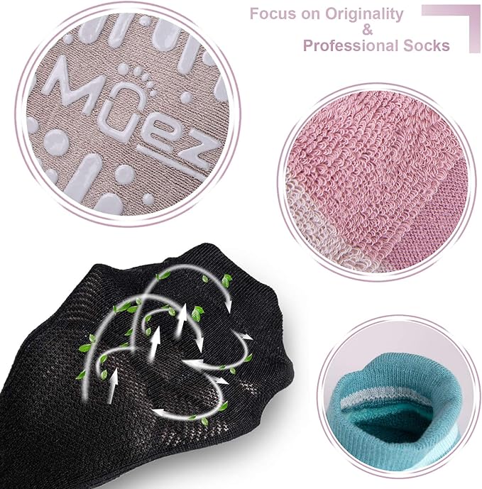 Muezna Non Slip Yoga Socks for Women, Anti-Skid Pilates, Barre, Hospital Socks with Grips, Size 5-10