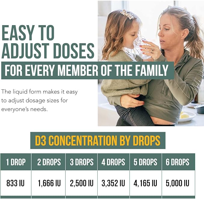 - Max Strength 5000 IU Yet Easy to Adjust Doses: MAX STRENGTH 5000 iu - YET EASY TO ADJUST DOSES:6 single drops of our liquid vitamin D delivers 5000 IU. Doses are also easy to adjust if you desire a smaller or larger amount. The adjustable doses make it easy to administer to children of any age.