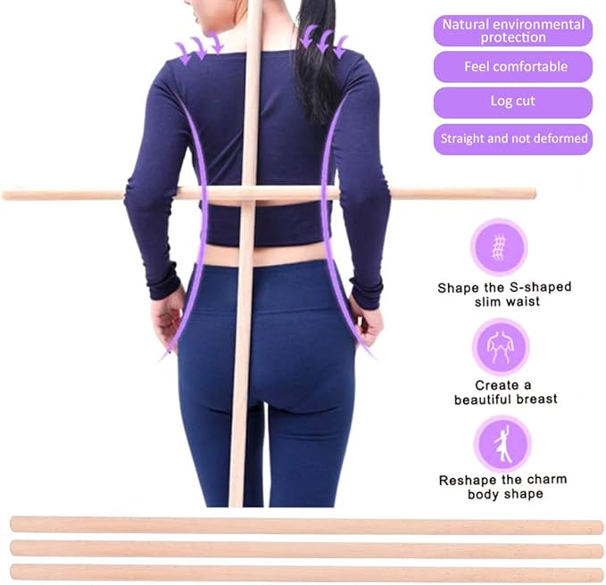 Dilwe Wood Yoga Stick, 3Pcs Open Shoulder Stick Yoga Fitness Yoga Assist Yoga Accessory, 70cmYoga Supplies