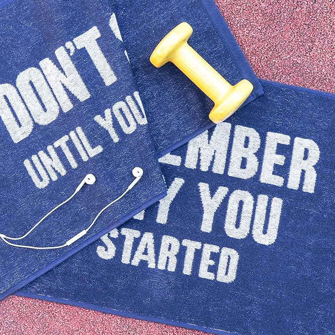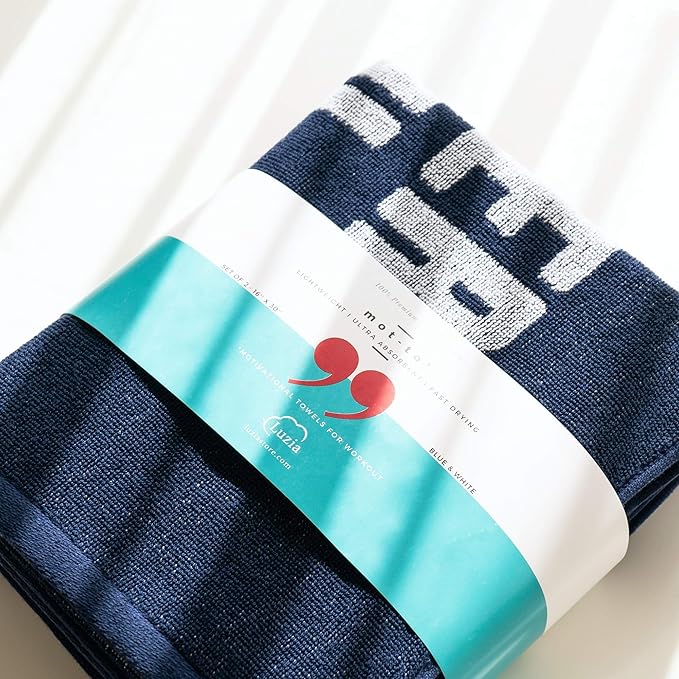 - INNOVATIVE DESIGN TO STAY INSPIRED: Luzia mot-to workout towels are durable enough for any gym setting, but creative and stylish enough to take to the pool, golfing, and yoga studio with bright white inspirational quotes on them.