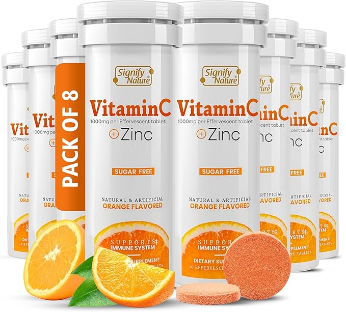 SIGNIFY NATURE Vitamin C 1000mg Effervescent Tablets - Potent Immune Support VIT C with Zinc Supplement - Sugar-Free & Vegan Formula | Dissolvable Vitamin C Tablets - Water Soluble Fizzy Elixir - 80CT