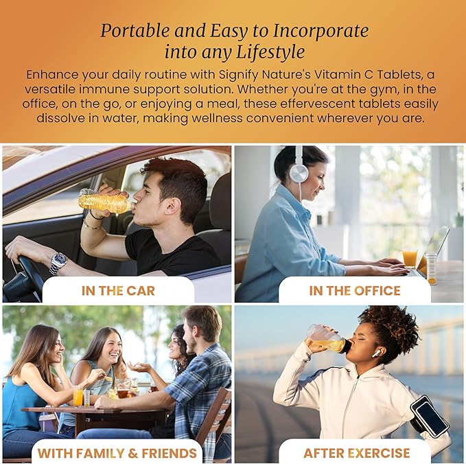 - PORTABLE EFFERVESCENT TABLETS: Bid farewell to mundane vitamin pills! Our on-the-go Vitamin C packets redefine convenience. Effortlessly dissolve our Vitamin C tablets with Zinc in water for a fizzy, tangy flavored drink. Whether at the office, in the gym, or on the move, make wellness a portable delight.