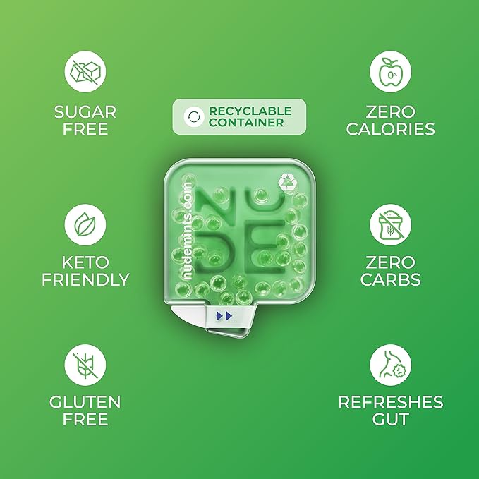 - SUGAR-FREE MINTS: Enjoy zero sugar and zero calories with NUDE Mints. Perfect for adults looking for a breath freshener that fits their dietary needs.