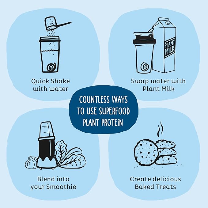KOS Plant Based Protein Powder, Blueberry Muffin - Organic Pea Protein Superfood with Spirulina and Immune Support Blend. Soy, Gluten, Dairy Free - Vegan Meal Replacement for Women & Men - 15 Servings