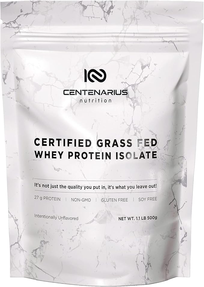 Centenarius Nutrition Grass Fed Whey Protein Unflavored Powder 500g with Natural Amino Acids for Optimized Muscle Growth, Recovery & Efficiency - Cold-Filtered, No Additives or Hormones