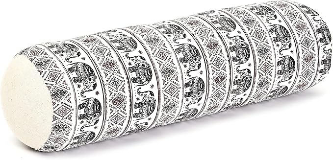 - The yoga bolster pillow measures 20 x 6 x 6 inches (WxDxH), is firm, and has a cylindrical form. Thanks to its softness and lightness, the neck roll can be stored easily and quickly