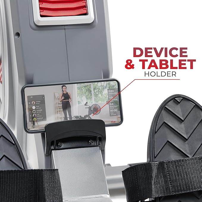 - DEVICE & TABLET HOLDER: Follow along to your favorite Sunny Health & Fitness training videos on your tablet or mobile device.