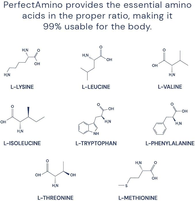 - 99% UTILIZED FOR POWER AND RECOVERY. Perfect Amino powder provides pure essential amino acids and vegan proteins needed to promote fast muscle recovery and tissue repair.*