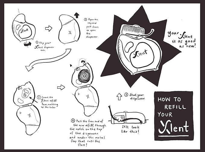 Xlent Expandable Floss Treated Activated Charcoal, Xylitol Natural Based Wax Fresh Mint Flavor | 3 Count (1 50 m Floss Blue Container Plus 2 50 m Refill Bobbins), 3 Count (1 Blister Card+2 Refill)