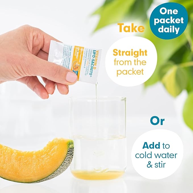 - NATURAL MELON TASTE: Lipo-Sachets deliver vitamin D in a liposomal form with a subtle natural melon flavor - no artificial additives or preservatives. For best taste, we recommend mixing the sachet with ice-cold water, juice, or a pre-made smoothie.